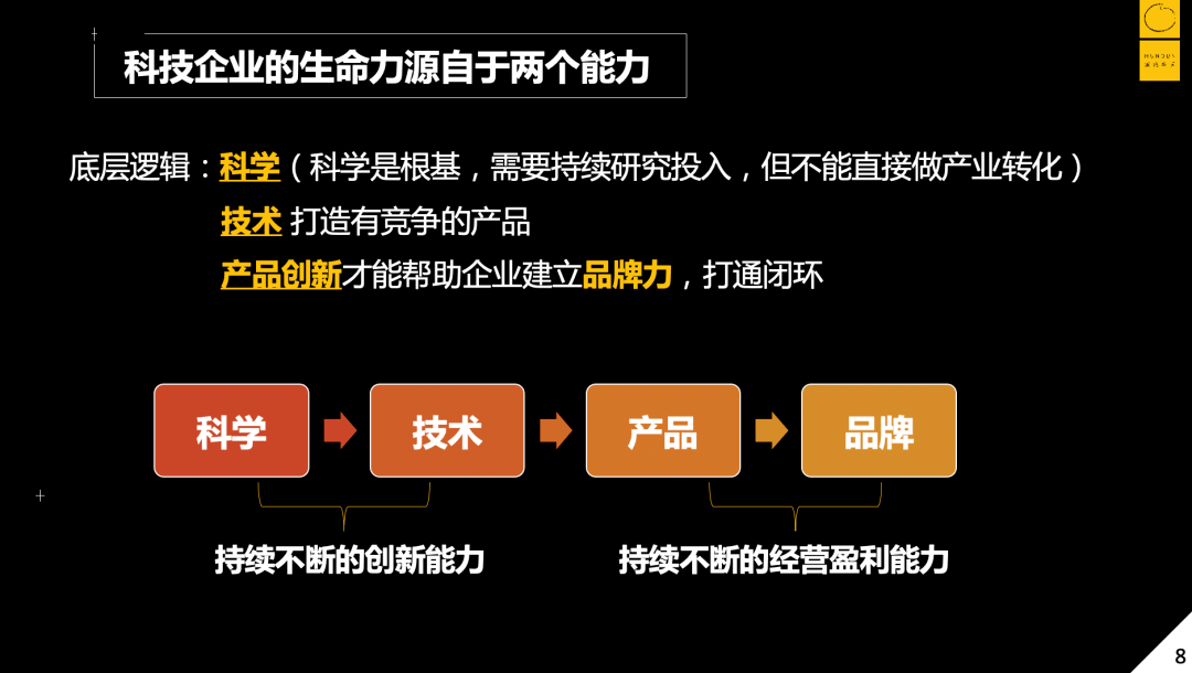 所以我们发展的底层逻辑就是从最核心的科学到技术,然后到产品,最后建立品牌。一定要形成这个闭环,否则从任何一个地方出发,都可能是空中楼阁。