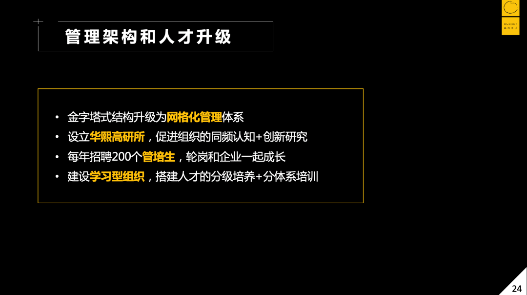投资后,我发现他们完全没有管理架构,也没有生产标准。所以我要做的第一件事,就是把质量标准建立起来。于是我请了一个总经理,他不用管研发、生产、销售,专心用一年的时间按照ISO9000的标准进行质量体系搭建,并且进行人员培训,搭建管理架构。