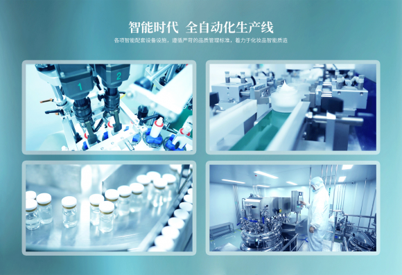 在过去的全力发展时期,公司已具备了十万级GMP标准化妆品洁净生产车间、护肤品一般液态单元、膏霜乳液单元全自动化智能生产线等各项智能配套设备设施。