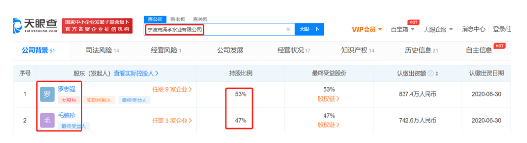 涌孝水业系实控人罗志强持股 53%并担任监事、罗志强配偶毛鹏珍持股 47%并担任执行董事兼总经理的“夫妻店”全资公司。