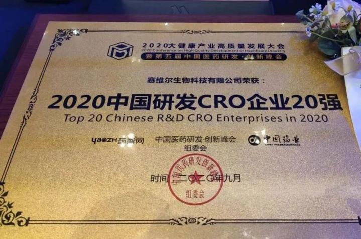 在此次大会上,主办方发布了2020中国药品研发综合实力排行榜、2020中国研发CRO企业排行榜、2020中国CDMO企业排行榜等6个行业榜单,武汉赛维尔生物科技有限公司(以下简称“赛维尔生物”)与泰格医药、康龙化成等多家企业一道入选“2020中国研发CRO企业20强”榜单,此次入选肯定了赛维尔的发展与进步,同时也给了赛维尔进一步航行的动力。