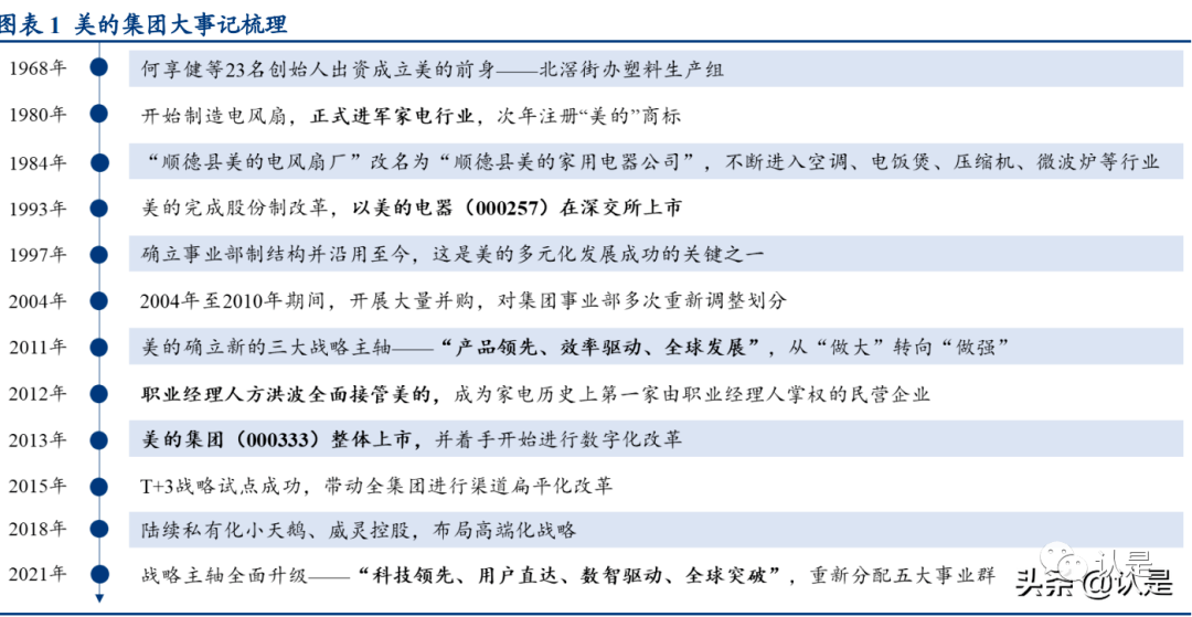 1) 尽管美的集团的事业群重构是在 2021 年,但各自均历经长期布局积累,绝非一日 之功,判断其发展和未来不应仅从当下开始计算,而应考虑其已有深厚底蕴;