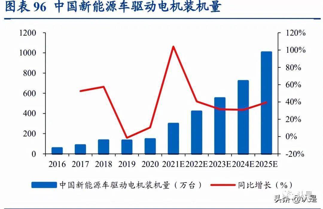 新能源车前景广阔,拉动相关汽配需求。2020 年 11 月,国务院办公厅发布《新能源汽 车产业发展规划(2021-2035 年)》,提出“到 2025 年新能源汽车新车销售量达到汽 车新车销售总量的 20%左右”。在国家产业发展政策驱动下,我国新能源汽车出现爆 发式增长。根据中汽协统计,我国新能源汽车年销量从 2016 年的 50.7 万辆增长到 2020 年的 136.7 万辆,年均复合增速为 28%,新能源汽车零部件需求相应被大幅拉升。据智 研咨询预测,至 2025 年我国新能源车驱动电机装机量有望超过 1000 万台,据 2020 年 的 146.3 万台有 6 倍以上空间,行业空间广阔。