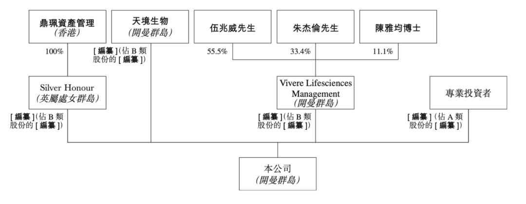 发起人为鼎珮资产管理、天境生物、伍兆威先生、朱杰伦先生及陈雅均博士。于本文件日期,鼎珮资产管理、天境生物及董事发起人分别直接或间接拥有已发行B类股份的52.0%、30.0%及18.0%