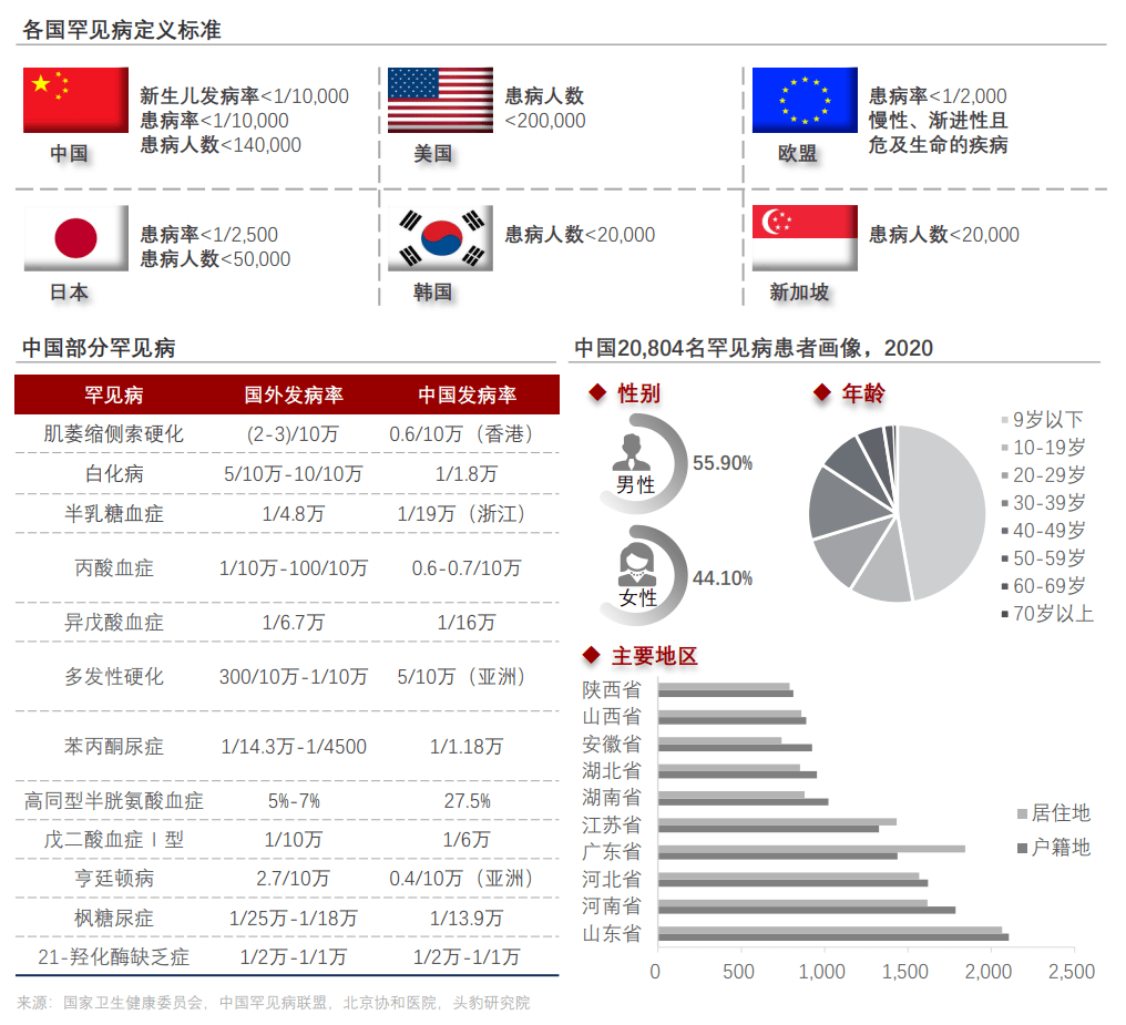 《中国罕见病定义研究报告2021》报告首次提出“中国罕见病2021年版定义”,即应将“新生儿发病率小于1/万、患病率小于1/万、患病人数小于14万的疾病”列入罕见病。