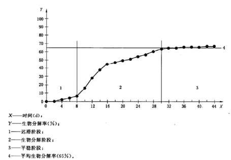生物分解率是指在生物降解过程中,试验材料所含有机碳会被微生物分解转化为生物气体 (二氧化碳、甲烷),试验过程中累计测得的生物气体量和该材料生物气体理论释放量的百分率。