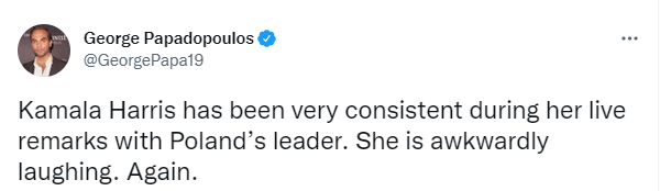 美国保守派人士本尼·约翰逊(Benny Johnson)在社交媒体发文称:“只有卡玛拉·哈里斯才会觉得在谈论乌克兰难民话题时大笑没问题。”