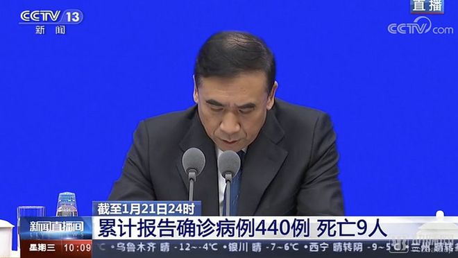 1月22日,国务院新闻办公室上午10时举行新闻发布会,国家卫生健康委员会副主任李斌介绍新型冠状病毒感染的肺炎防控工作有关情况。截止1月21日24时,国家卫健委介绍新型冠状病毒肺炎感染情况:累计报告确诊病例440例,死亡9例。