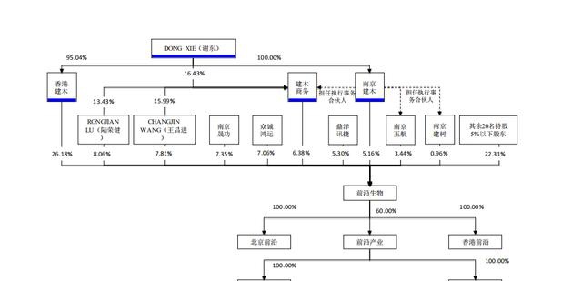 截至招股说明书签署日,表面上公司的第一大股东是香港建木,持有前沿生物26.18%的股份,而实际上第一大股东是实控人谢东。