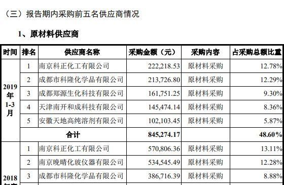 从客户情况看,2018年公司的第一大客户为国药控股股份有限公司,销售额为140万元,占营业收入比重为73.51%。2019年一季度,公司的第一大客户仍为该公司,销售额为125万元,占比为 55.38%。2018年至2019年一季度的数据看,都存在对第一大客户严重依赖的情况。
